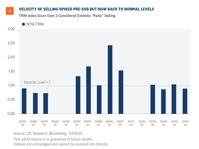 Equities vs. Fixed Income. LPL Research’s Strategic and Tactical Asset Allocation Committee (STAAC) remains slightly overweight equities after the Committee reduced its suggested equity exposure and moved higher in quality in fixed income about three weeks ago. While we believe investors should react to recent developments in the banking sector with some caution due to ongoing risk of deposit flight, the backstops provided by central banks and bank regulators over the past week have given us confidence the crisis will be contained. But sentiment remains fragile and technical indicators we follow suggest some caution is prudent.
